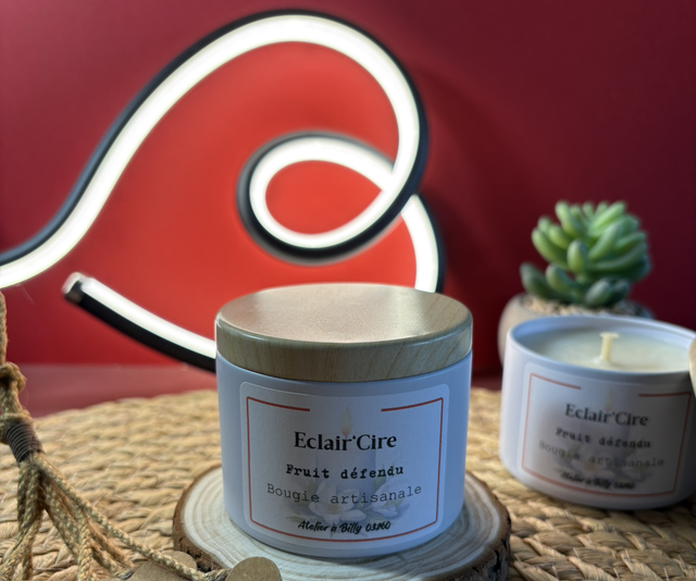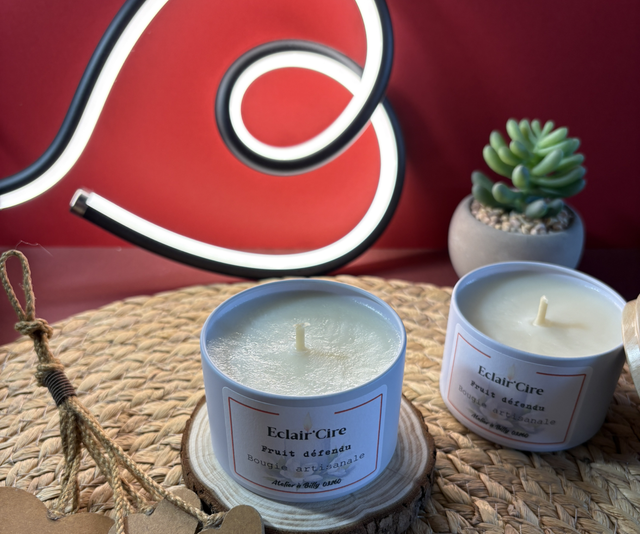 Cire végétale de soja de qualité, parfum de Grasse sans CMR et sans phtalates et une mèche 100% coton. Colorant sans CMR