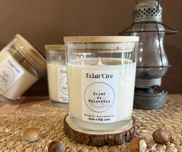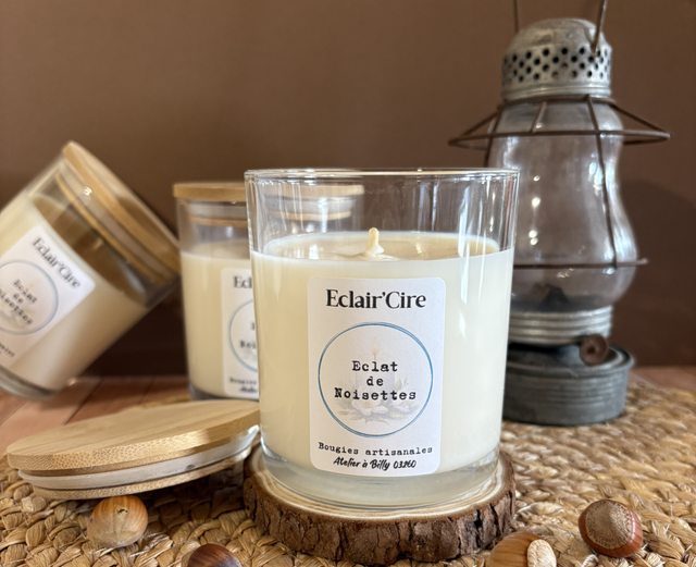 Cire végétale de soja de qualité, parfum de Grasse sans CMR et sans phtalates et une mèche 100% coton. Colorant sans CMR